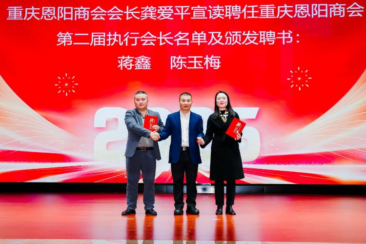 重庆恩阳商会会长龚爱平宣读商会聘任第二届执行会长、执行秘书长、专职秘书名单,并颁发聘书。