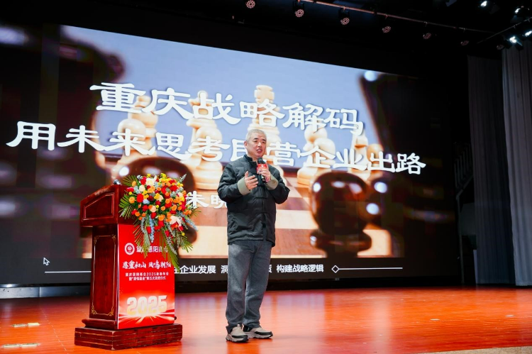 产业经济学专家、原浙江大学教授朱晓炜围绕《重庆战略解码——用未来思考民营企业出路》这一主题进行了分享。他从宏观经济形势剖析到区域产业机遇洞察,再到民营企业转型策略,为台下企业家们带来了一场知识盛宴。