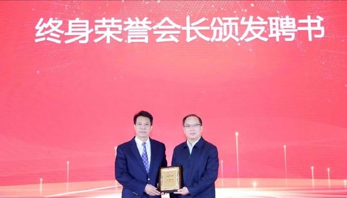 河南省工商联主席胡汉阳为终身荣誉会长黄就成颁发牌匾