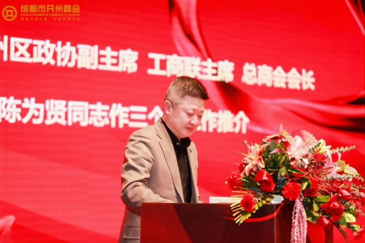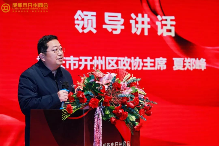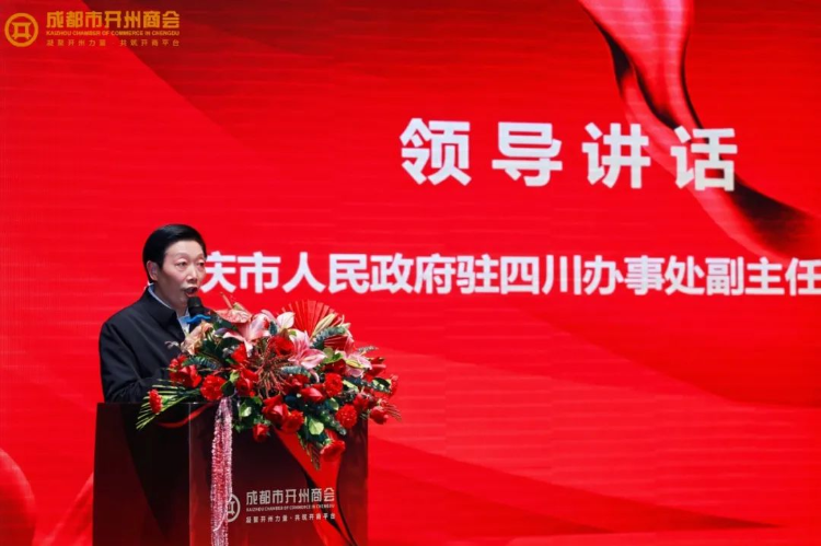 重庆市人民政府驻四川办事处副主任张正华代表办事处,向成都市开州商会表达了热烈祝贺。他强调,开州人杰地灵,以吴俊会长为代表的开州籍企业家们,积极响应川渝两地党委政府的号召,在公益慈善、家乡建设等方面贡献突出,为成渝地区双城经济圈建设贡献了“开商”力量。同时,他对商会未来围绕成渝地区双城经济圈建设重点工程,推动川渝万达开地区统筹发展提出了殷切期望。