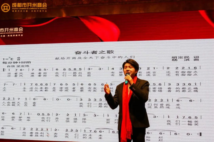 在团拜会的尾声,精彩的文艺表演将现场气氛推向了高潮。青年作曲家杨洪,这位来自开州区岳溪的才俊,带来了充满激情与力量的《奋斗者之歌》。激昂的旋律仿佛诉说着开州儿女在创业道路上的不懈追求与顽强拼搏,让在场的每一位听众都深受感染,提振了大家在2025年继续奋斗的士气。