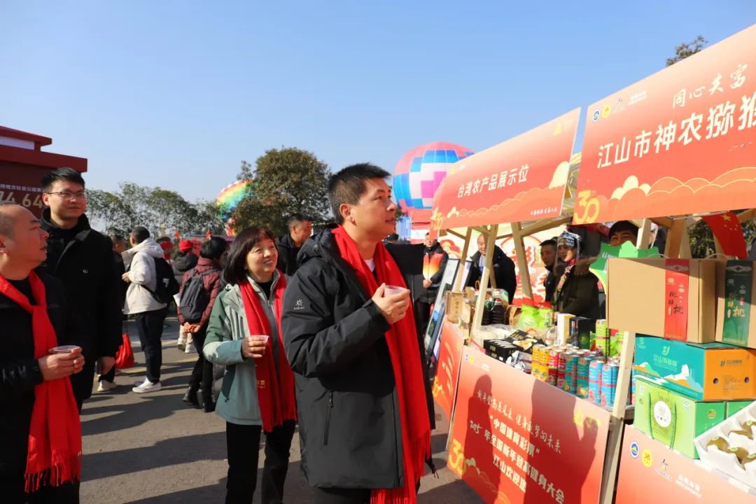 除了全民健身体育展示、大型体育活动展示、“登高望远·健康启航”体育科普项目等系列活动外,“同心共富·品味江山”农特产品展示摊位也是人头攒动、热闹非凡。为助力农特产品销售推介,江山市委统战部组织农业龙头企业、民族村等在新年登高会场现场进行宣传推介,不断打响江山农特产品知名度,进一步彰显江山统一战线在助力地方经济发展中的积极作用。