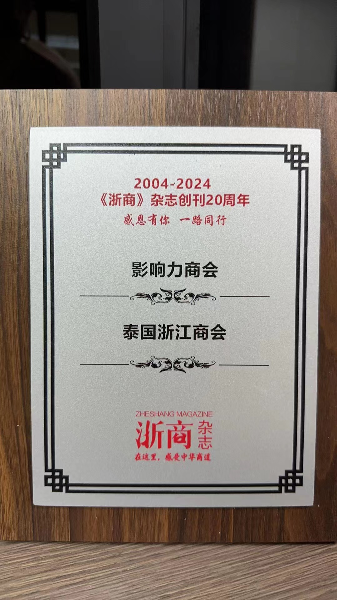 当天,来自五湖四海的浙商朋友相聚一堂,共品浙商20年的点点滴滴。现场为功勋浙商、杰出浙商、影响力商会、钻石级合作伙伴、助力《浙商》高质量发展优秀机构(平台)颁发荣誉证书,感谢20年来与《浙商》杂志同心同向、同爱同在的伙伴与平台。其中,泰国浙江商会在2024第21届浙商(投融资)合作周中获得“影响力商会”称号,执行副会长董锋出席并领奖。