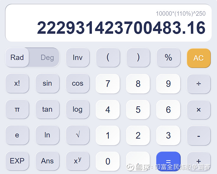 答案就是1Wx110%的250多次方,最终这个利润就是可达上万亿。