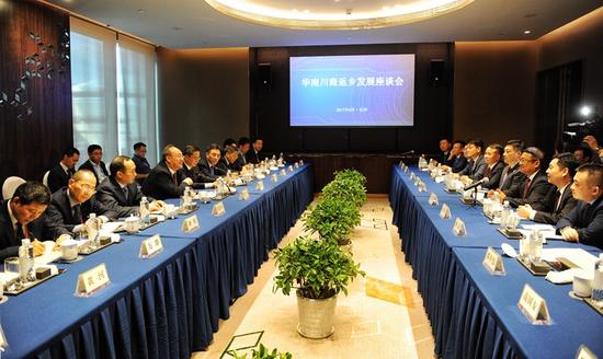 9月25日,2017年泛珠三角区域合作行政首长联席会议结束后,省委副书记、省长尹力在湖南省长沙市与华南川商座谈,欢迎广大企业家积极为家乡建设提出意见建议,抢抓机遇返乡投资兴业发展,为推动实现“两个跨越”、建设美丽繁荣和谐四川贡献智慧和力量。