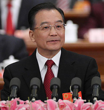 国务院总理温家宝代表国务院向大会作政府工作报告。 新华社记者 刘卫兵 摄