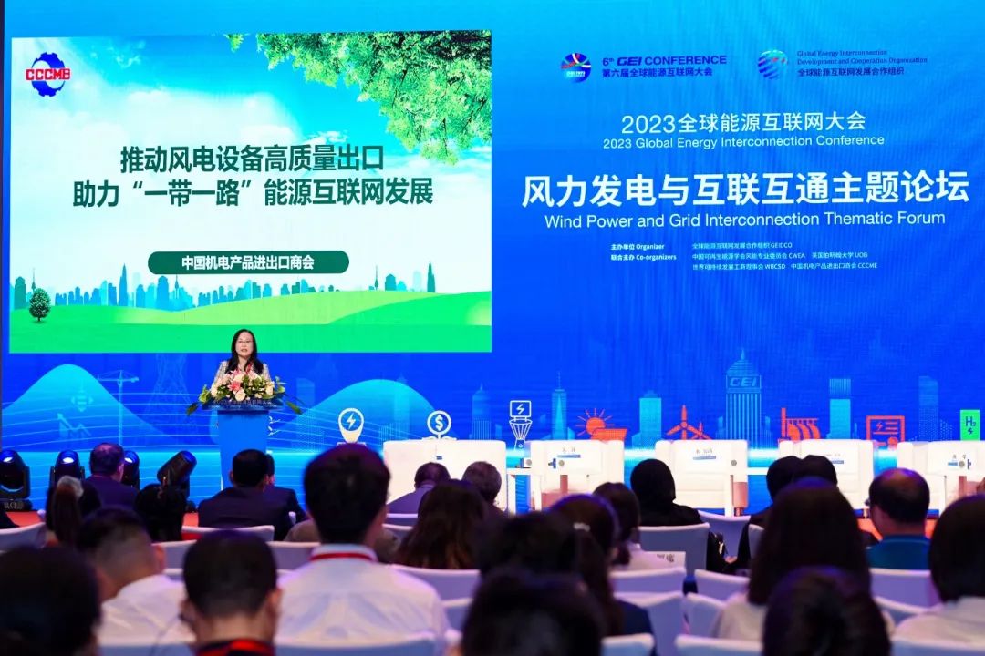 刘春副会长在论坛上发表“推动风电设备高质量出口,助力“一带一路”能源互联网发展”主题演讲。刘会长指出,中国风电产业具有产业体系完备、规模经济优势明显、合作方式多元等优势,在服务绿色“一带一路”建设方面取得了显著成效。我国风电“走出去”的空间还非常广阔,为促进中国风电设备高质量出口,她建议,我国风电产业相关企业进一步加强国际业务规划、强强联合出海、创新金融支持方案,并表示中国机电商会将推动风电领域相关会员企业积极利用全球能源互联网合作组织丰富的数据资源、强大的研究能力、广阔的国际合作平台等优势,共同为全球能源互联网建设做出贡献。