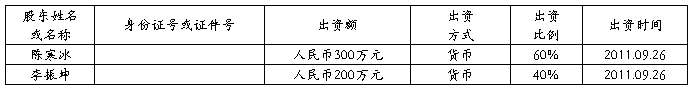 第五条  股东的姓名或者名称、出资方式、出资额和出资时间如下: