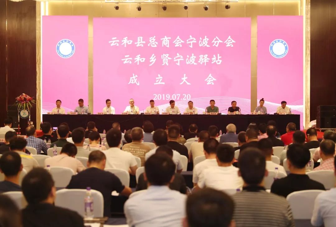 7月20日,云和县总商会宁波分会暨云和乡贤宁波驿站成立大会在宁波北仑区希尔顿大酒店召开。云和县人大常委会主任叶晓勇,北仑区政协副主席、工商联主席汤黎明,县委常委、统战部长杨伟业,县委常委、副县长梅旭龙,县政协副主席王沿伟,县乡贤会会长马国华等出席。北仑区、云和县有关部门和各兄弟商会领导、嘉宾以及宁波云和商会会员共260人参加了会议。