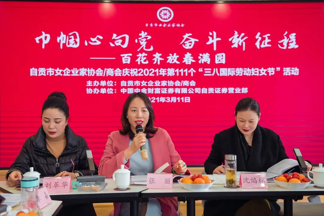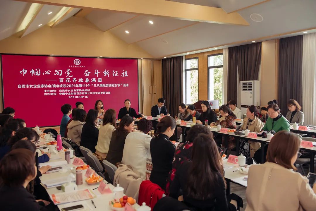 为深入贯彻落实省委十一届八次全会、市委十二届十一次全会精神,在全国两会召开和第111个“三八”国际妇女节之际,2021年3月11日,在市妇联和市工商联的有力指导下,自贡市女企业家协会/商会成功举办了“巾帼心向党 奋斗新征程——百花齐放春满园”庆祝“三八”妇女节活动。市妇联党组书记、主席沈焰林,市委统战部副部长、市工商联党组书记、常务副主席、总商会副会长刘义,市妇联党组成员、副主席曾涛,市工商联党组成员、副主席、市总商会副会长许明刚等领导出席了活动,市女企业家协会/商会会员及特邀嘉宾等80余人参加活动。