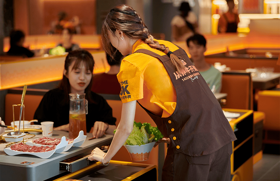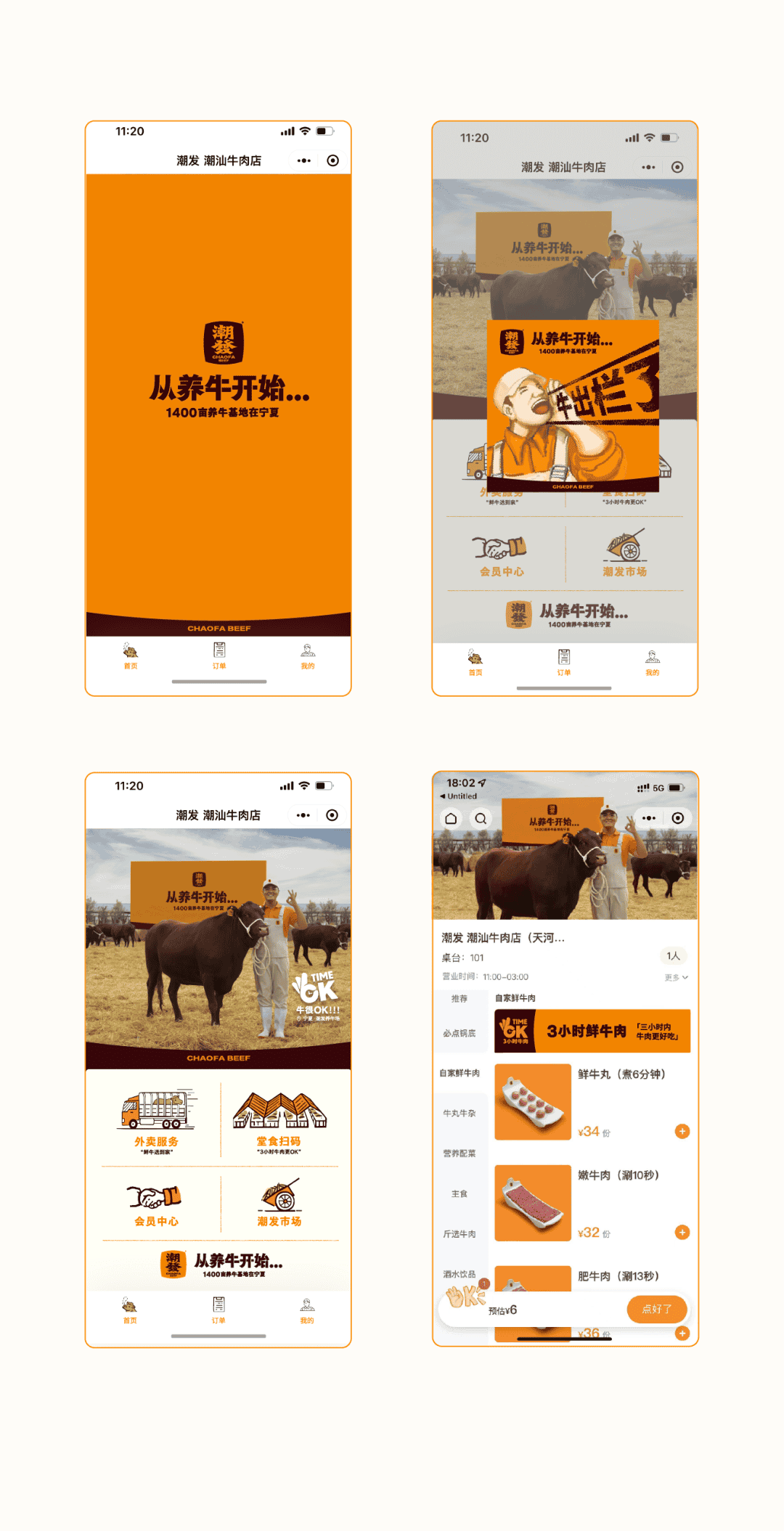 除了IP形象外,潮发启动“养牛人计划”。给每一位服务员设计“农场感”工服,将每一位服务员塑造为“养牛人OK哥”。在热情服务顾客的同时创造顾客在农场吃饭的感觉,虽然身在都市,却亲临农场,进一步体验到潮发牛肉的“新鲜”。