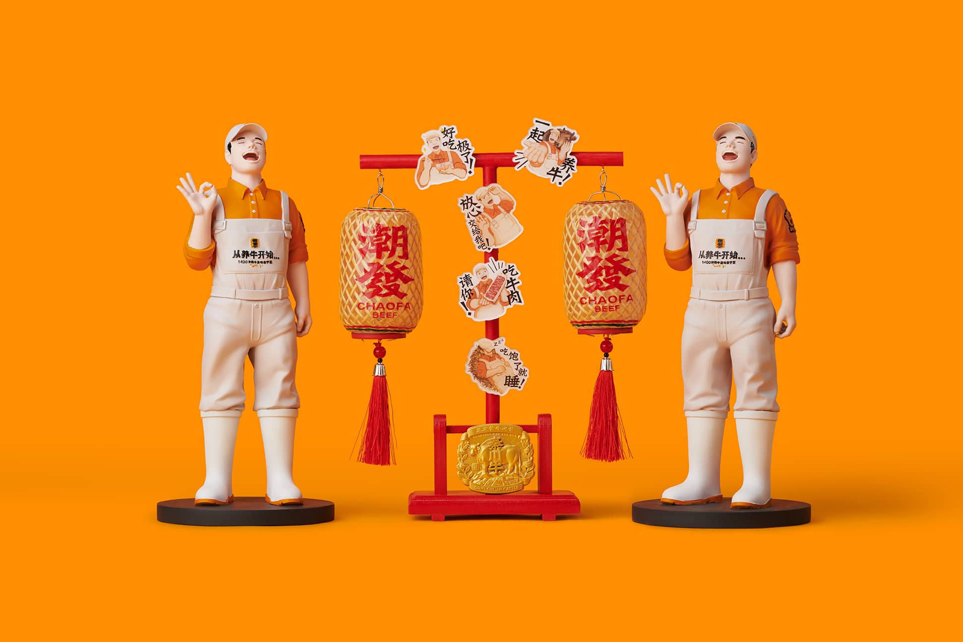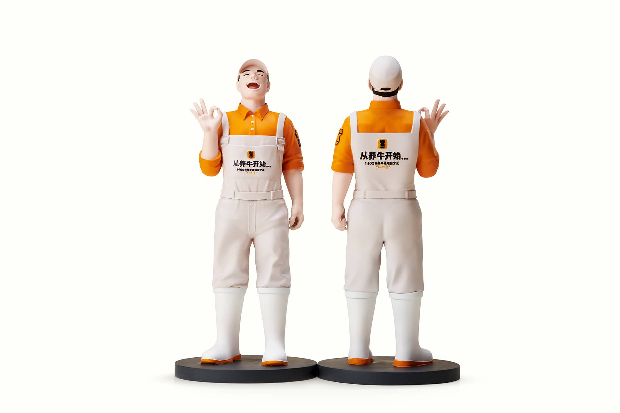 为了继续强化门店空间的新鲜感,我们创作了潮发的IP形象——养牛人OK哥,通过养牛人身份来强化潮发“养牛”的事实。