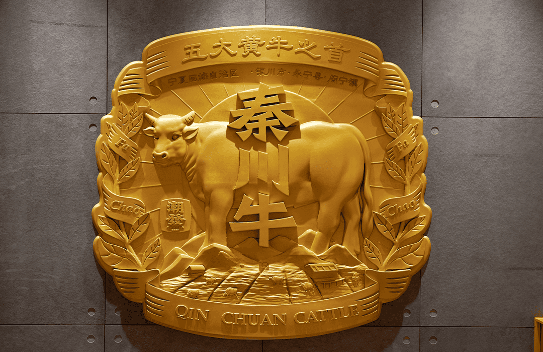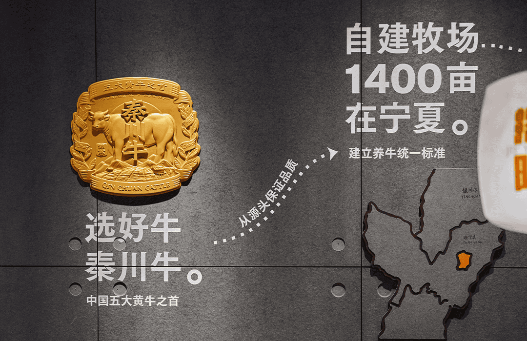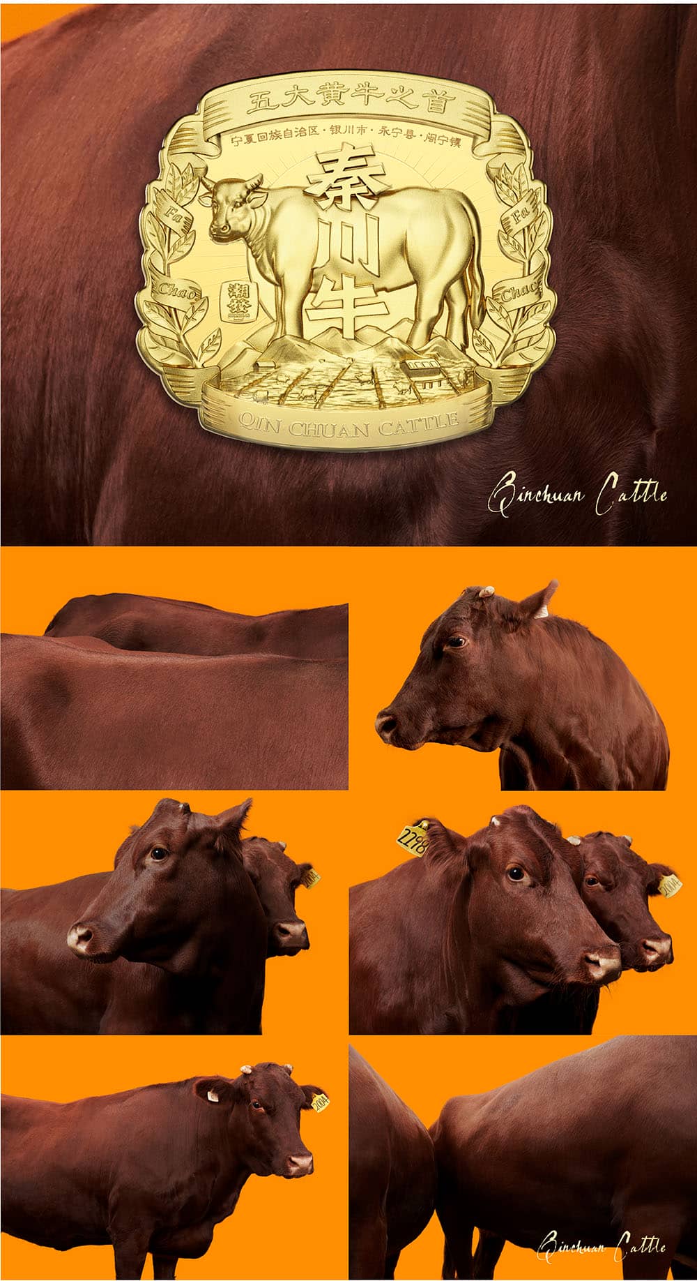 展示一个东西品质好,最秒懂的符号是什么?——金牌徽章。潮发坚持使用的秦川牛是国内五大牛肉之首,肉质鲜嫩、品质优良,但是秦川牛的价值感在消费者视角是缺失的。潮发需要通过对牛种可视化的呈现,来展示潮发领先整个行业的产品品质感。