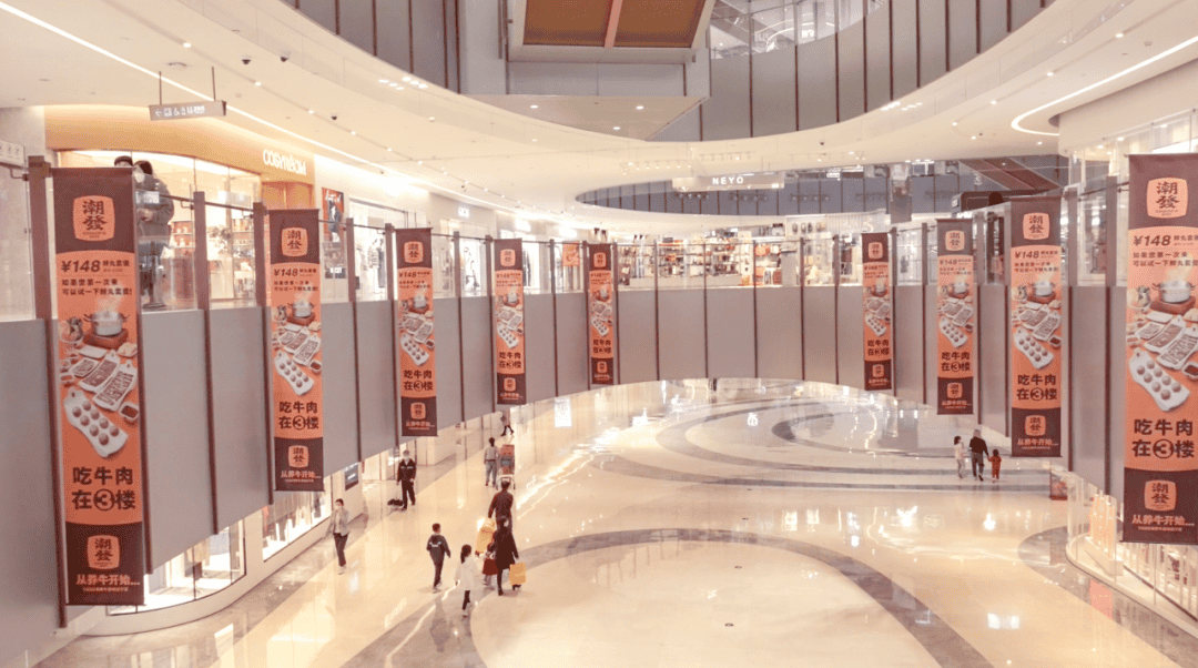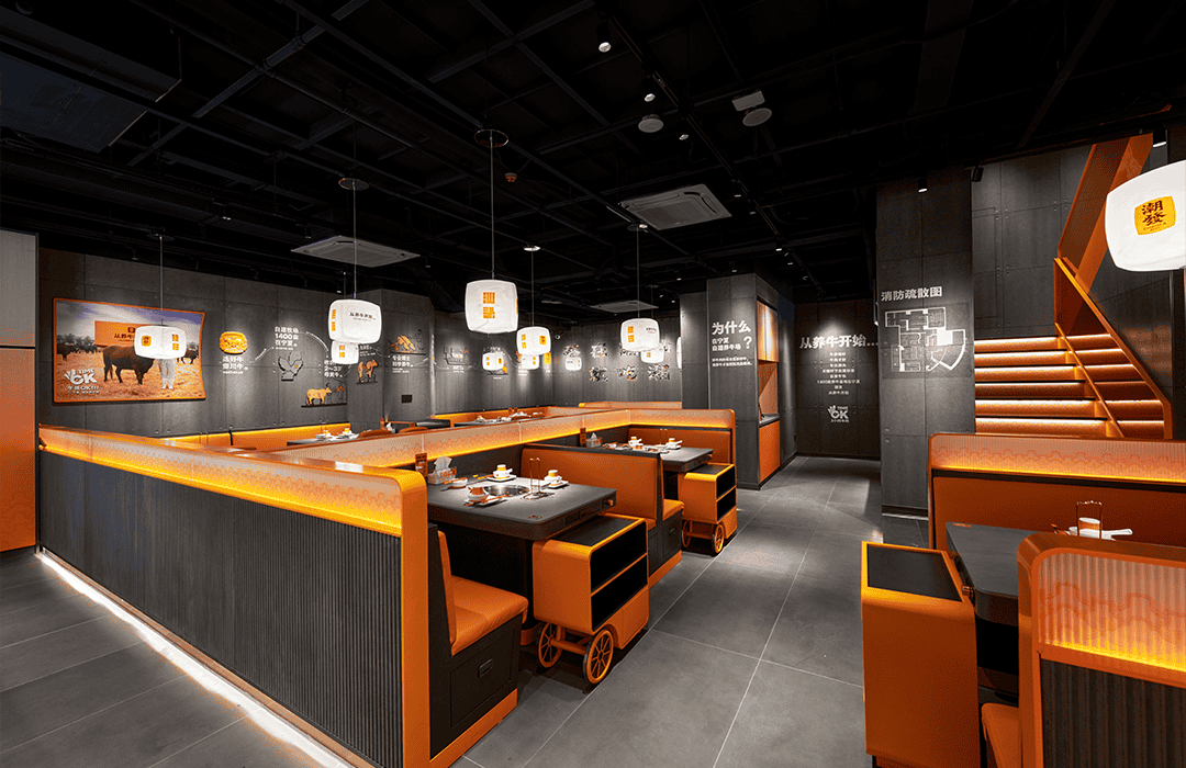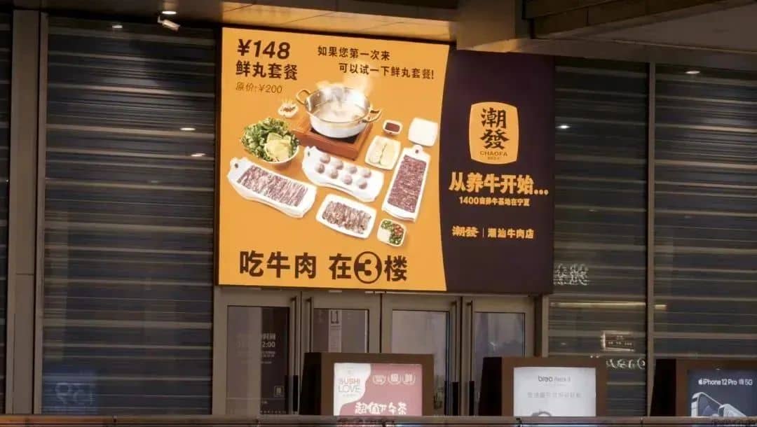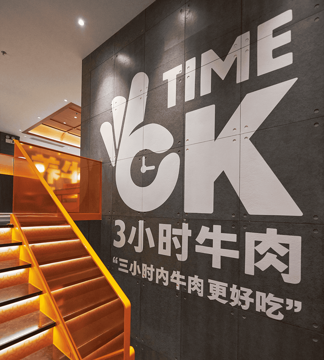 因此我们在门店里设置了一个“四分屏+钟表盘”的超级装置,随时随地都在提醒顾客潮发的牛肉在源源不断地运输途中,塑造每一块牛肉都是新鲜送达的感觉。