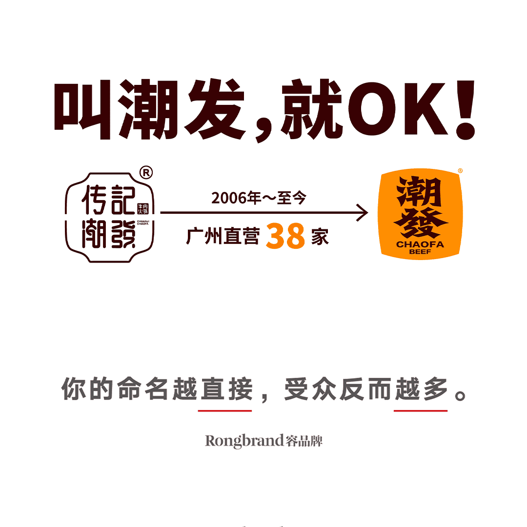 在初期调研中,我们发现“传记潮发”的名字chuan/zhuan难记易错,即使叫对了,很多消费者也基本只会喊“潮发”两个字。于是我们将品牌名简化为“潮发”。
