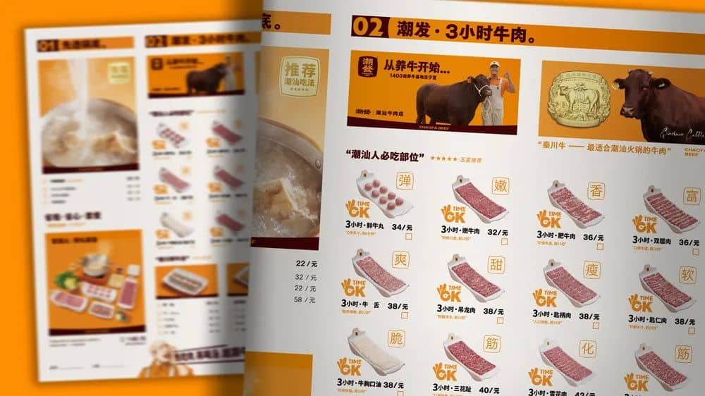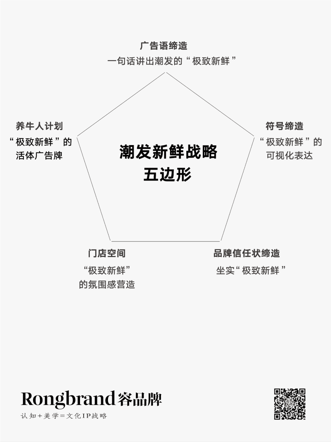 极致全案要像串糖葫芦一样,力出一孔,“所有表达”都是“一个东西”。潮发最大品牌资产是“鲜”,于是我们通过“养牛”串联起潮发所有的“鲜”,将“鲜”的价值极致放大,给到顾客极致的“新鲜”体验。