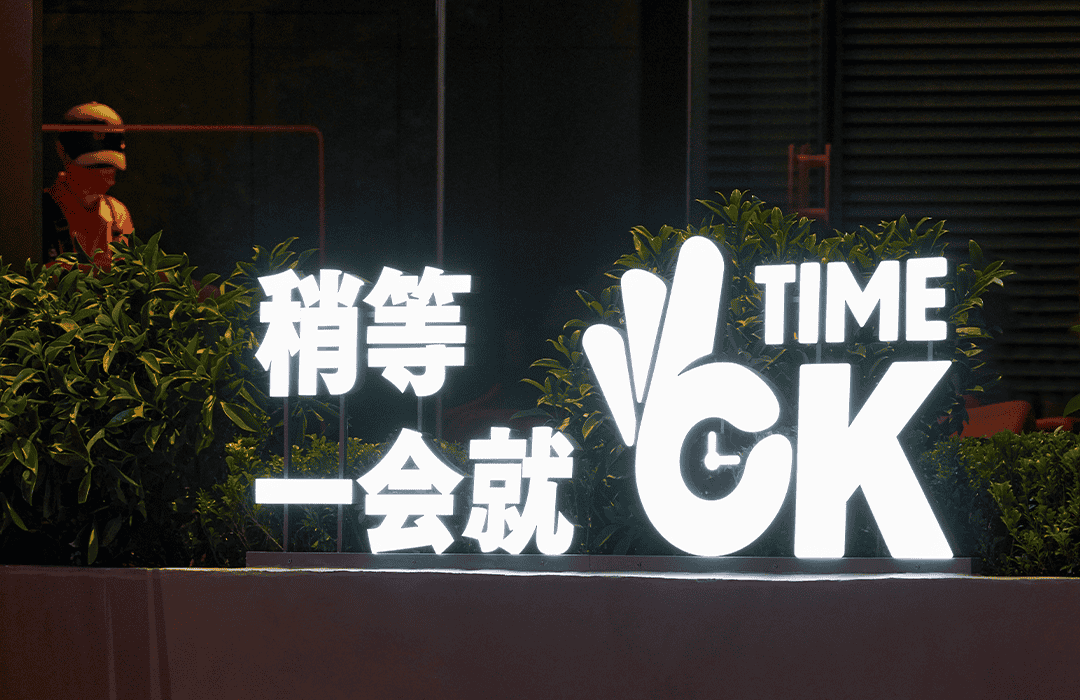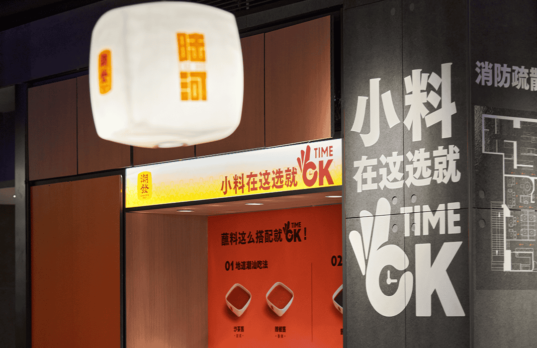 潮发门店空间的等位区、收银台、卫生间、小料台......等等,都会在合适的地方加上“OK3小时”符号,形成统一化的品牌感。