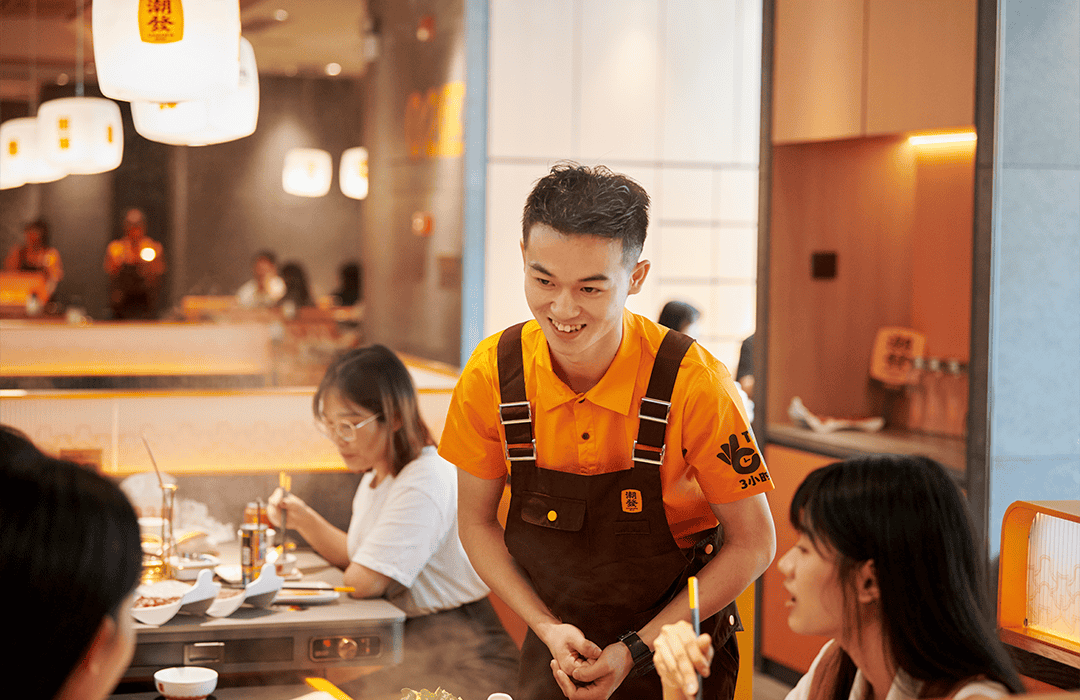 每一位潮发的服务员在客人进门的时候都会说:“欢迎光临来潮发,从养牛开始更OK”,上菜和送客的时候都会加上OK的手势符号,服务员的工服上也会加上OK符号,增强整体服务的统一感。