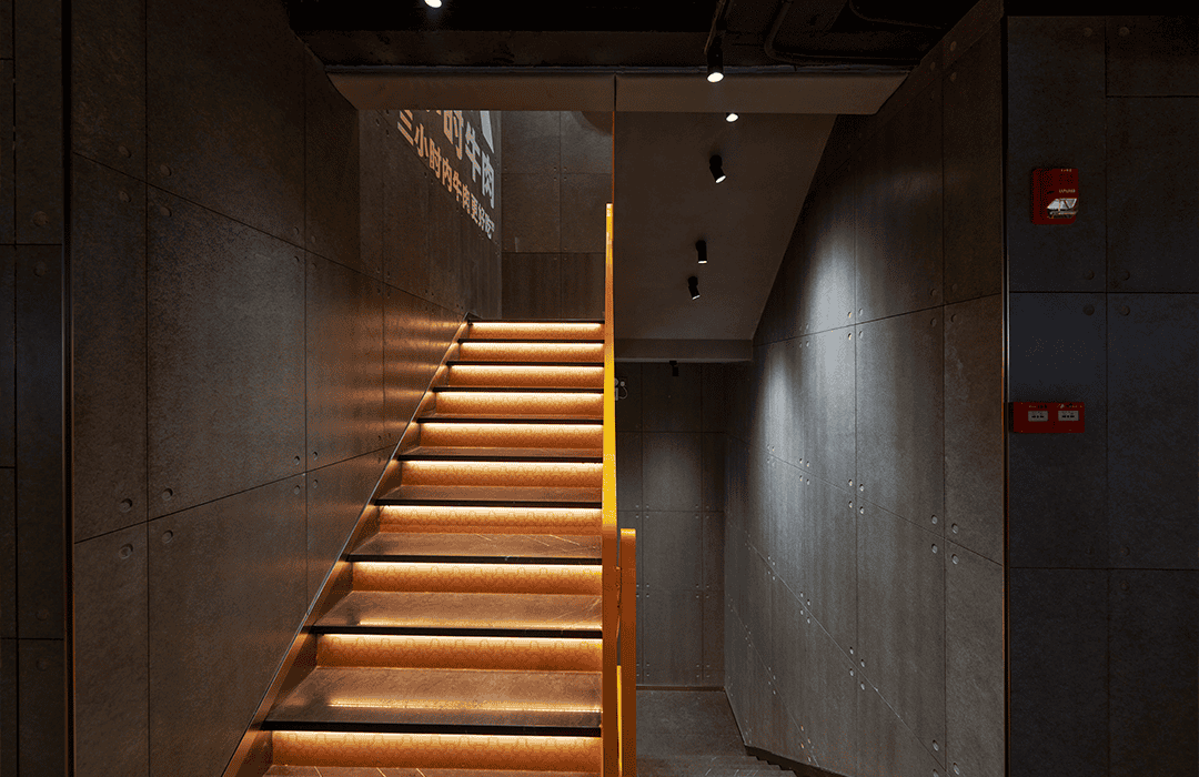 这样的建筑材料我们第一时间想到了清水混凝土,用混凝土灰色的冷淡感放大牛肉的鲜红,用混凝土的粗糙感放大牛肉的鲜嫩,于是我们整体空间的材料选用了清水混凝土的材质。