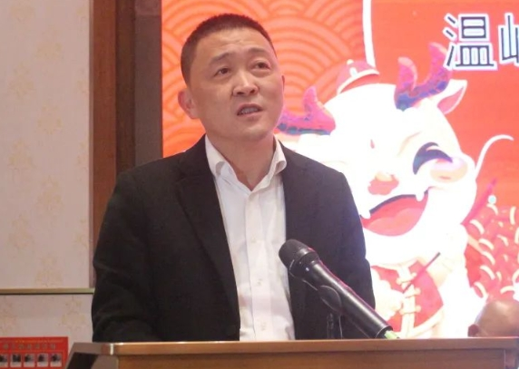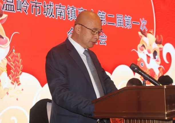 温岭市城南镇商会第一届理事会会长陈学森宣读工作报告