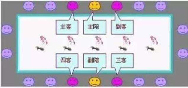 5. 旅行车接送客人:旅行车以司机座后第一排,即前排为尊,后排依次为小。其座位的尊卑,依每排右侧往左侧递减。