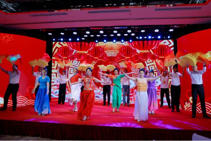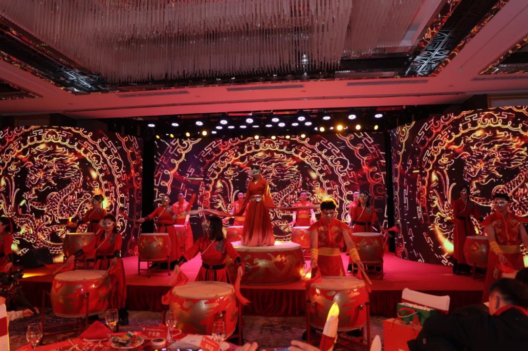 随后,伴随着欢快的音乐响起,联谊演出拉开帷幕。各组会员纷纷登台亮相,中国鼓《龙腾虎跃迎新春》、舞蹈《相亲相爱的一家人》、歌曲《新长征路上的摇滚》、小品《非诚不扰》等10余个精彩节目轮番上演,生动地诠释新时代民营经济代表人士的卓越风采,现场气氛热烈,高潮迭起,欢呼不断,掌声连连。