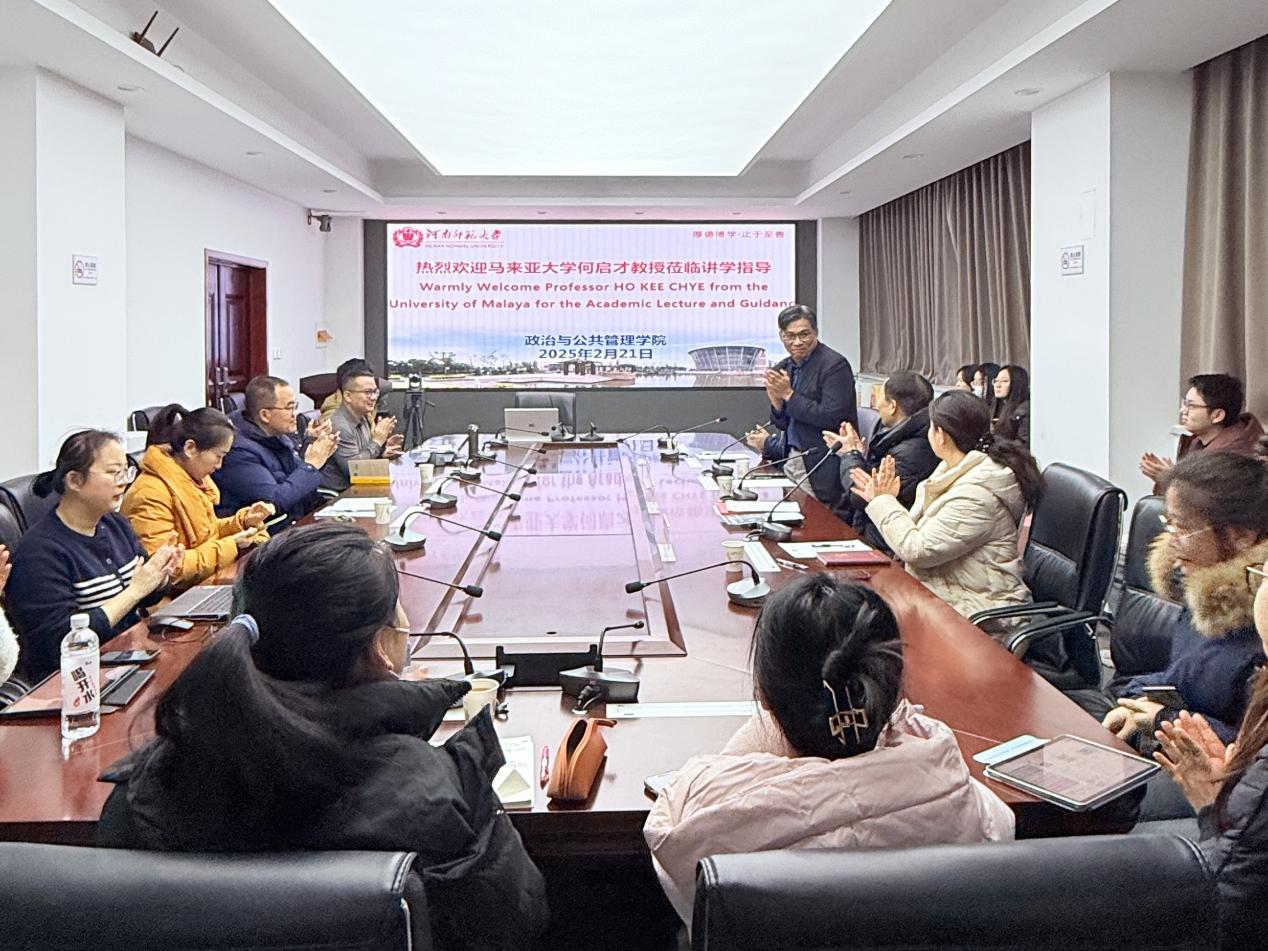 221日上午,应政治与公共管理学院邀请,马来亚大学文学暨社会科学院何启才教授为学院师生作了题为《中国商会在马来西亚的在地发展研究》的报告。学院相关专业教师、研究生、本科生等积极参与。本次报告由学院院长李洪河教授主持。