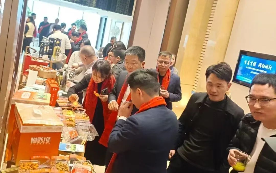 在西宁市江山(浙江)商会年会活动现场,品鉴区域热闹非凡,会员们品尝着清甜多汁的猕猴桃、口感醇厚的蜂产品、品种多样的江山糕等特色农产品,对其品质赞不绝口,纷纷前来询问产品信息,为后续合作奠定基础。