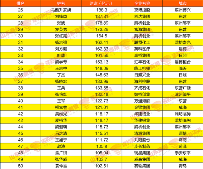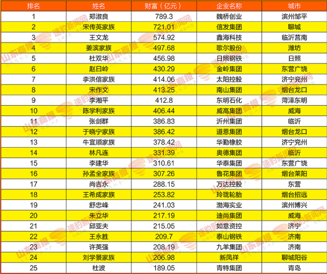 2021山东创富榜发布,魏桥郑淑良以789.3亿元重回榜首