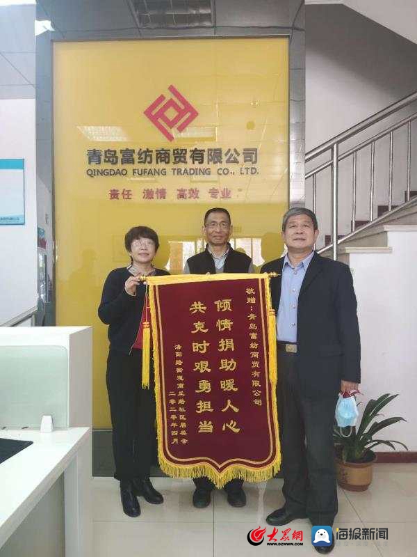 大众网·海报新闻青岛5月1日讯(记者 丁学燕 通讯员 刘佳)2020年初,新冠肺炎疫情来袭,牵动着全国人民的心。市北区洛阳路街道商丘路社区广大党员、居民志愿者坚守一线,全力守住疫情防控阻击阵地。作为辖区爱心企业代表,青岛富纺商贸有限公司及时伸出援助之手,积极捐赠善款支援社区疫情防控工作,充分彰显了企业家社会责任担当和爱心人士的奉献精神。