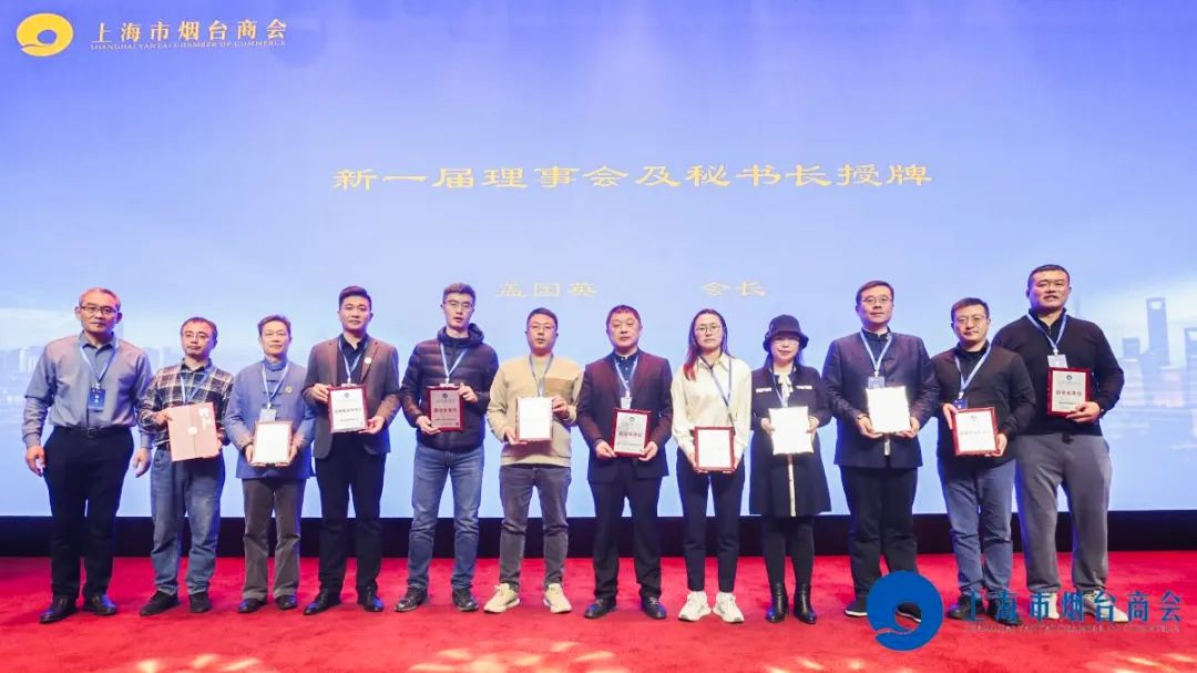 会上,上海市政府合作交流办公室联络处处长刘强为会长盖国英授牌,烟台市委统战部副部长、市工商联党组书记胡卫宁为创始会长陈河江授牌。盖国英为新一届理事会及秘书长授牌。
