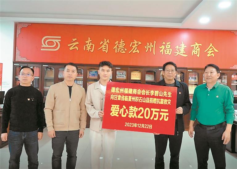 一方有难,八方支援。12月22日下午,德宏州福建商会会长李碧山向甘肃省临夏州积石山县捐款仪式在瑞丽举行,捐赠抗震救灾爱心款20万元。