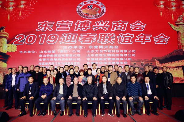 1月12日,东营博兴商会2019迎春联谊年会在万达嘉华酒店举行,东营市政协副主席、市工商联主席生钦勇,东营市工商联党组成员、副主席刘剑辉,博兴县政府副县长李双明,东营区委常委、统战部长杜书亮,东营区政府党组成员刘辰勇,博兴县政协副主席、县工商联主席安长东,东营区政协副主席马献忠,东营区委统战部副部长、区工商联党组书记、主席张龙潭,东营博兴商会会长曹新禄与商会各会员企业,在东营工作、生活的部分博兴籍老领导以及各兄弟商会代表,东营博兴两地的部分企业家200余人共同参加活动。