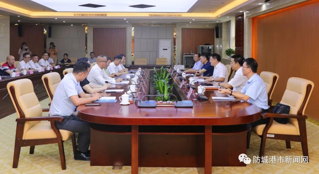 7月31日上午,市委书记李延强、市长班忠柏会见前来我市投资考察的广西福建总商会会长、广西国悦集团董事长林谋悦等一行。防城港日报全媒体记者 蒙俊蓉 摄