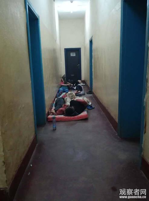 卢本巴希移民局走廊,被扣押同胞睡在自己花钱买来的床垫上
