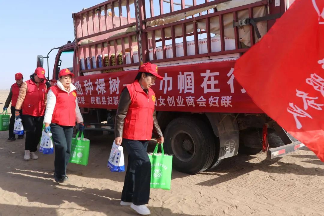 3月20日,武威市、民勤县妇联组织巾帼志愿者,联动民勤县女企业家商会妇联积极助力“请到民勤种棵树”志愿服务活动,通过精准保障、暖心服务为生态建设注入“她力量”。