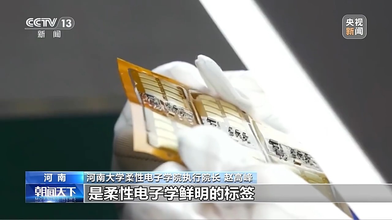 河南大学柔性电子学院执行院长 赵高峰:柔性电子技术追求刚柔相济,电子器件具备轻、薄、柔、透四大特点,可拉伸,延展性强,可加工性强。