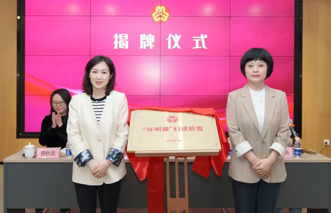 市妇联党组书记、主席何鸣宇,当湖街道党委副书记王利燕共同为“环明湖”妇建联盟揭牌。