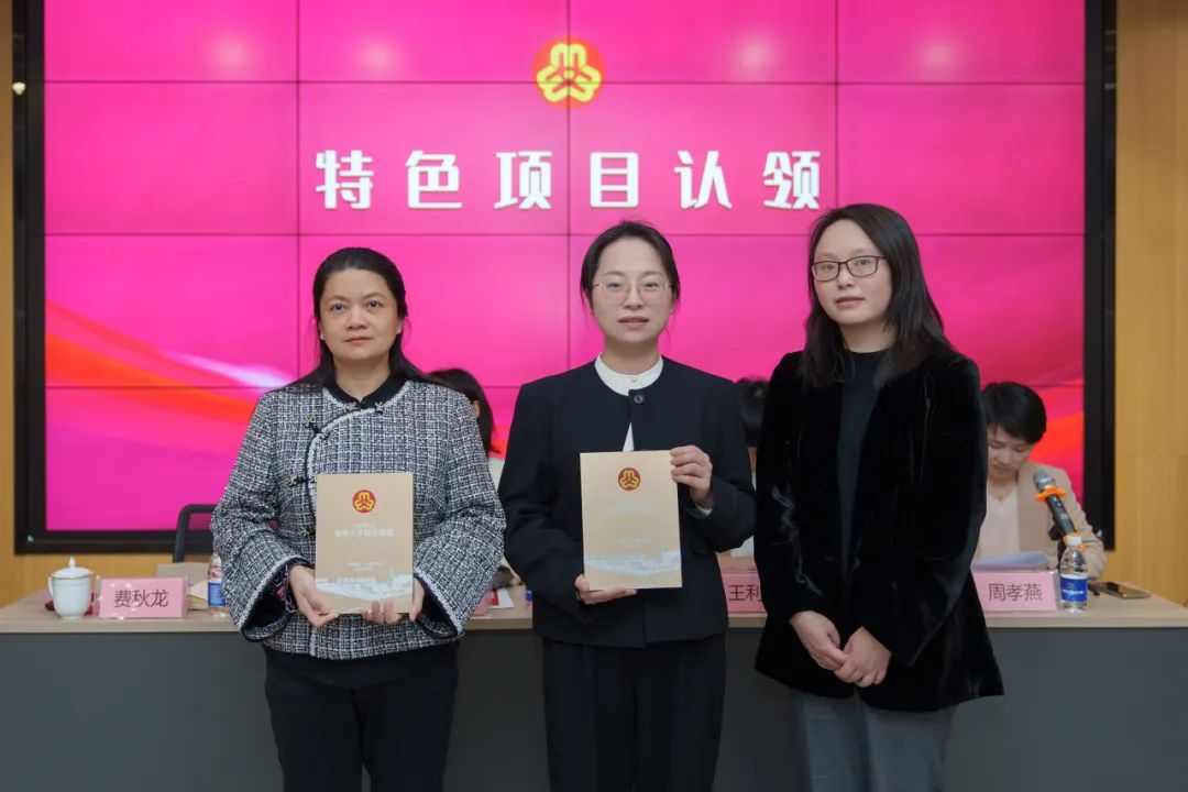 市妇联党组成员、副主席费秋龙为特色项目认领单位授牌。