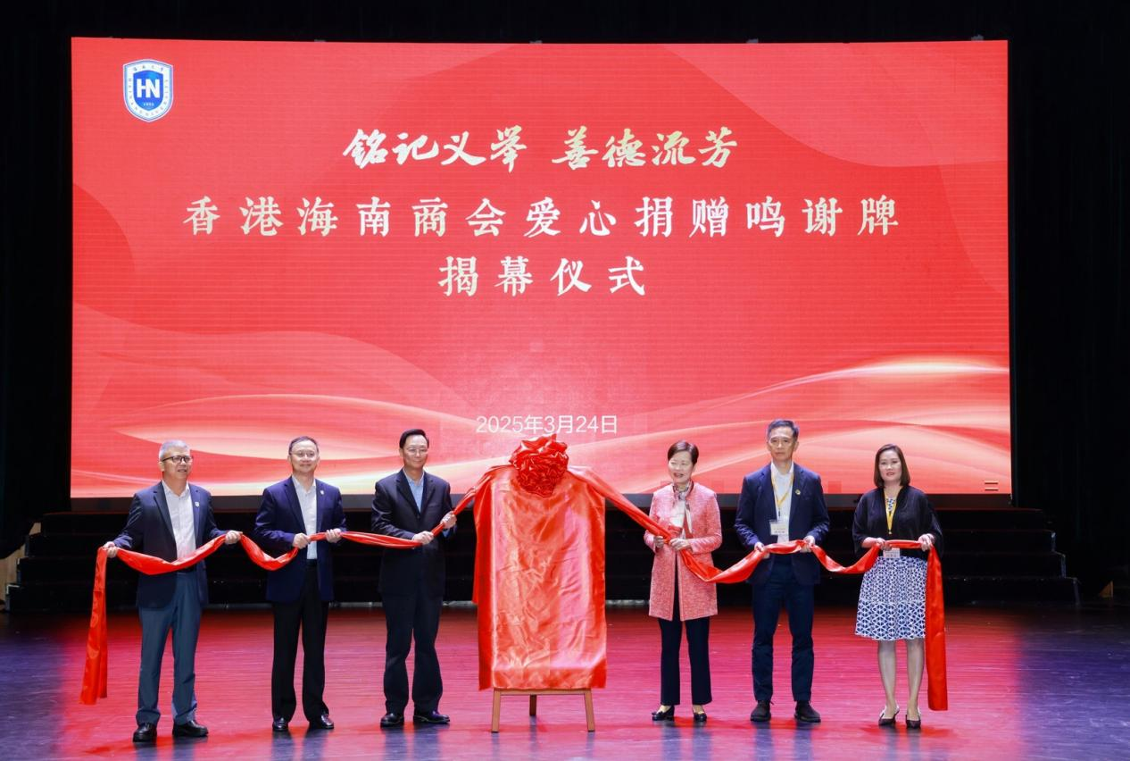 3月24日上午,“铭记义举 善德流芳”香港海南商会爱心捐赠鸣谢牌揭牌仪式在海南大学思源学堂大礼堂举行。