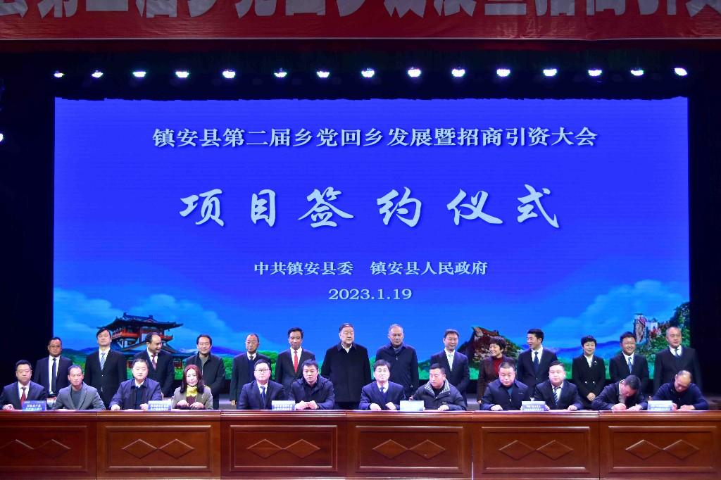 会上,吴前进、冯朝勇、袁礼锋、杨清平、刘学智为“回乡创业优秀奖”“关注家乡发展情怀奖”获得者颁奖;并现场签约了镇安县光伏新能源基地项目、镇安县双储林场国家储备林项目、福樾南山生命文化纪念公园项目等共37个,引资总额106.97亿元。