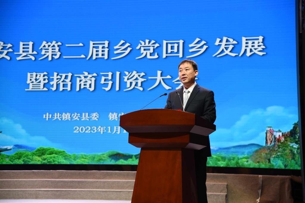 冯朝勇指出,上升期的镇安恰遇奋斗期的乡党,相互赋能一定会彼此成就,相互合作一定能共同出彩。各位乡党、各位嘉宾、各级各部门要乘着这次会议的东风,紧扣全市“一都四区”战略目标,瞄准镇安“一厅四地”坐标定位,坚持把招商引资作为“头号工程”,突出“三个强化”高位推动,围绕“三个聚焦”招大引强,发挥“三个作用”汇聚力量,做好“三个保障”确保落地,优化“三个环境”竭诚服务,坚持以项目建设和招商引资组织经济工作,为镇安县更高质量发展提供更强动力。最后,冯朝勇衷心祝愿大家新的一年,身体健康、阖家幸福、万事如意,事业兴旺、吉祥美满、幸福安康!