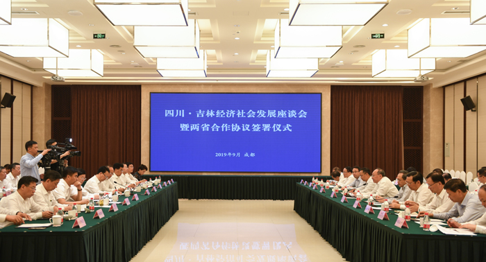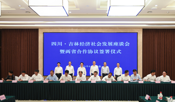 两省在座谈会上签署“1+11”合作协议。四川省委常委、副省长王宁,吉林省委常委、副省长吴靖平分别代表双方签署两省政府战略合作框架协议。两省11个部门(单位)间分别签署合作协议。