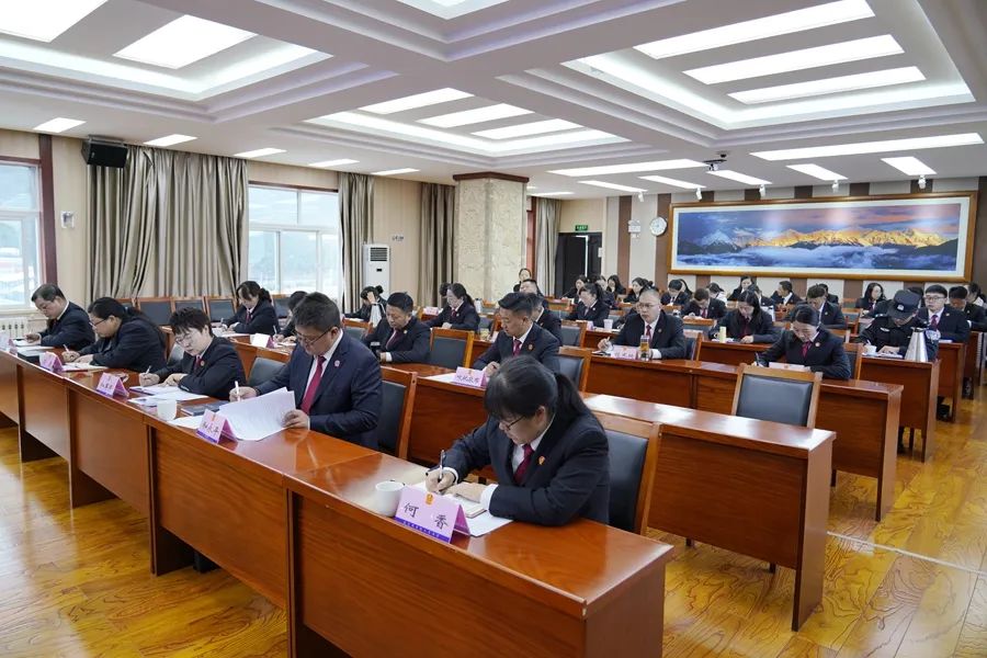 迪庆中院党组副书记黄志出席会议并讲话。院党组成员、副院长蒋培源主持会议,中院党组班子成员、审判委员会专职委员、三县(市)法院院长、香格里拉市人民法院班子成员、迪庆中院全体干警参加会议。