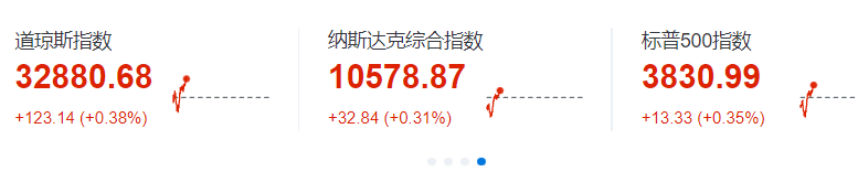 美股三大指数震荡上行。