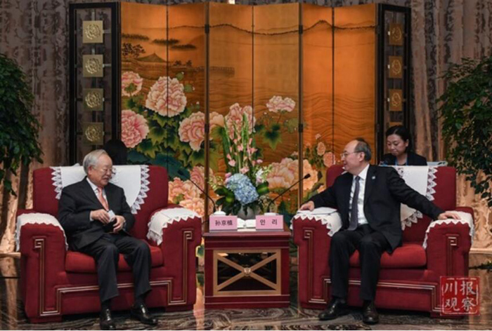 成都市市长罗强、省政府秘书长张剡等参加会见。(记者 胡彦殊 摄影 田为)