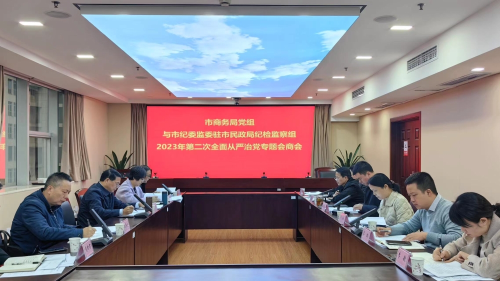 11月30日,市商务局党组与市纪委监委驻市民政局纪检监察组召开2023年第二次全面从严治党专题会商会,共同研究全面从严治党工作。局党组书记、局长潘宏军主持,市纪委监委第五纪检监察室主任黎伟到会指导。局党组领导班子全体成员,市纪委监委驻市民政局纪检监察组全体干部以及局市管干部、机关各科室、二级机构班子成员等参加会议。
