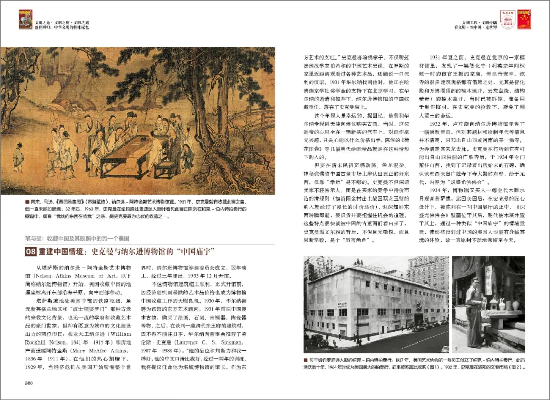 从堪萨斯的纳尔逊-阿特金斯艺术博物馆(以下简称纳尔逊博物馆)开始,美国收藏中国的地理坐标离开东部沿海平原,向中西部移动。堪萨斯城地处美国中部的铁路枢纽,1929年,当经济危机从美国开始席卷整个世界时,纳尔逊博物馆筹建委员会成立,翌年动工,经过三年建设,1933年12月开馆。
