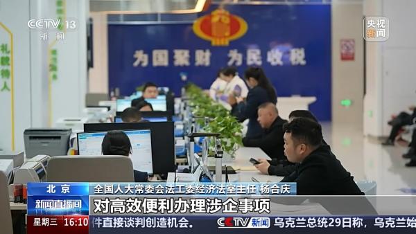 全国人大常委会法工委经济法室主任 杨合庆:强化行政执法监督,坚决遏制“乱收费、乱罚款、乱检查、乱查封”等行为,对高效便利办理涉企事项、完善人才激励政策、健全信用修复制度、健全纠纷多元化解机制、发挥行业协会商会作用、加强海外综合服务和权益保护等作出规定。
