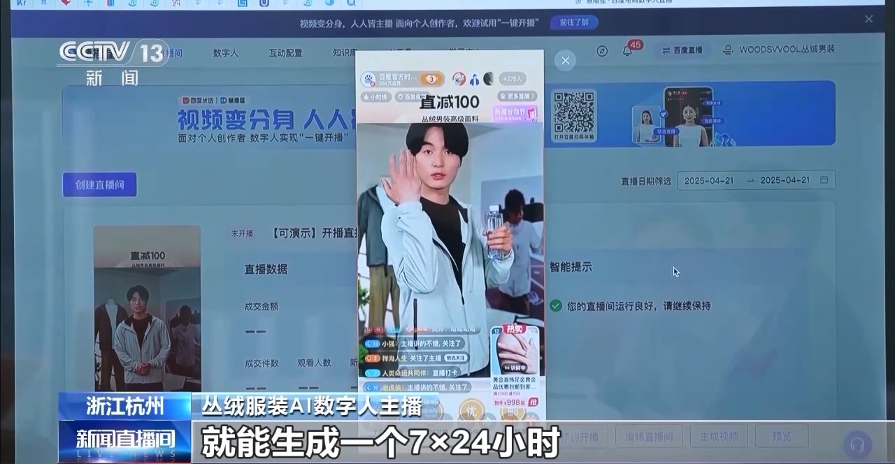 面对积压的货品,企业负责人想到组建直播团队,通过电商平台实现出口转内销,但直播团队从何而来呢?百度的AI数字人直播技术帮了忙。企业只要在百度后台配置数字人主播,或者拍摄录入真人主播,再进行动作、表情捕捉,并匹配真实场景,就可以快速生成媲美真人的智能AI主播。
